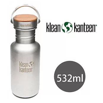 【美國Klean Kanteen】不鏽鋼瓶532ml_霧面鋼(竹片鋼蓋)霧面鋼