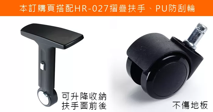 本訂購頁規格:摺疊/升降/滑面扶手、尼龍腳座、PU防刮輪