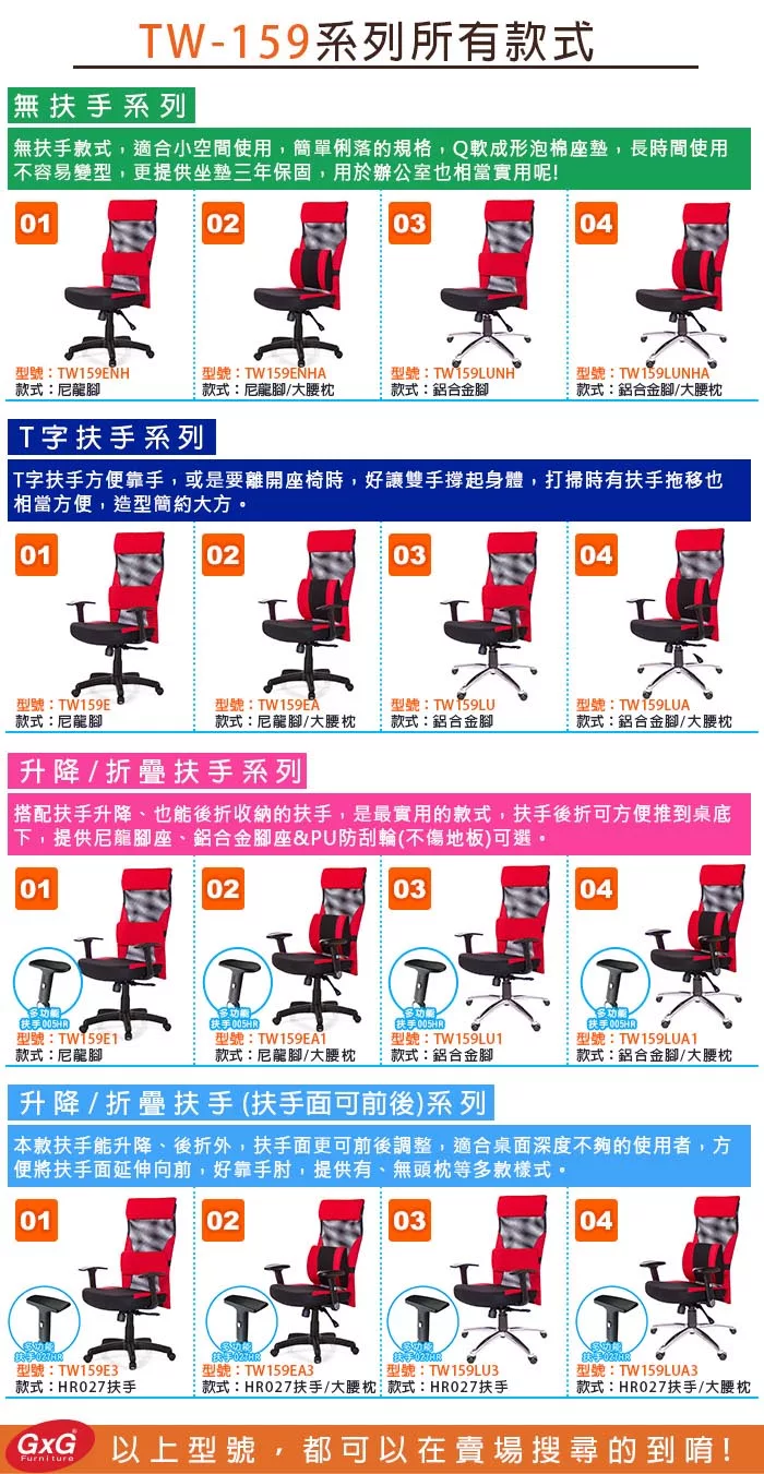 ※本款TW-159電腦椅,提供16種款式可選,可以依據需求購買