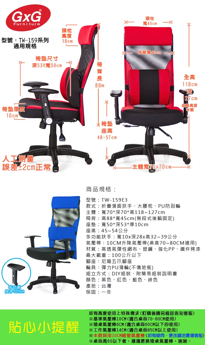 GXG 高背電腦椅 (摺疊滑面扶手) TW-159E3 請備註顏色 評價