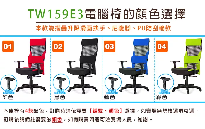 ※本款TW-159電腦椅,提供16種款式可選,可以依據需求購買
